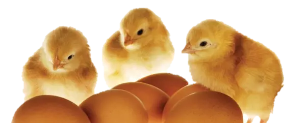 The life of a broiler starts when it is just an egg! However, there is a big difference between an egg you eat and an egg that hatches into a chick. The egg with a chick inside has been fertilised by the male chicken: the rooster..