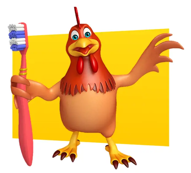 Chickens, like other birds, have no teeth. They pick up the feed using their beak. That feed goes through the oesophagus (food pipe) into the crop. The crop is kind of like a bag, where the food is stored for a while and becomes soft. Once it’s soft enough, the feed goes to the first stomach: the proventriculus (bet that’s a mouthful to say!). Here, acid and enzymes are added to the feed, making it easier to break down. What remains then goes to the second stomach: the gizzard. The gizzard contains small stones that the chicken has eaten, as these are given to them along with their feed. The gizzard grinds the feed down, using the small stones to make the food smaller. These stones sort of do the same job as teeth. From the gizzard, the feed goes through the intestines and what is not digested eventually comes out as poo.