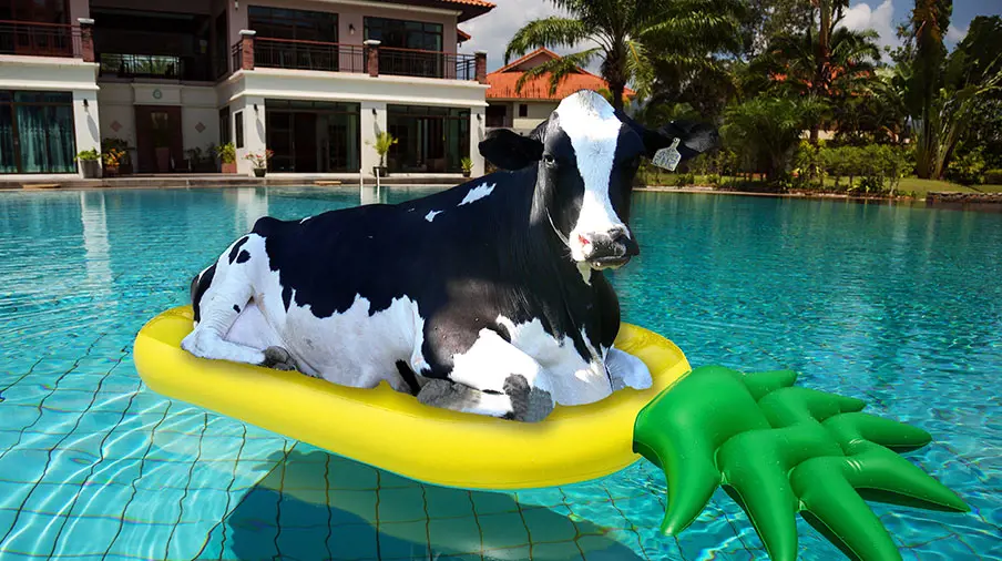 Cows like to be milked. By using a milking robot, the farmer gets up to 10% more milk from the cow! Most cows learn very quickly where they can find the milking robot. And they like going into the robot because it gives them food. Some cows are slower to find their way to the robot themselves, so the farmer helps them find their way. A cow can always find the milking robot within a 400 metre radius. Clever!