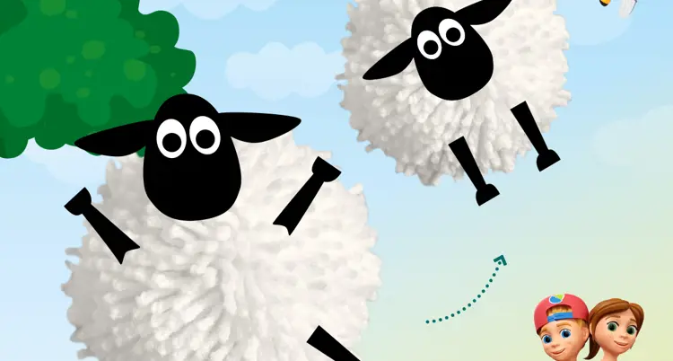 Step 3. Stick two eyes on the head and glue the head to the body. Then cut four legs out of black paper and glue those to the sheep’s body as well.